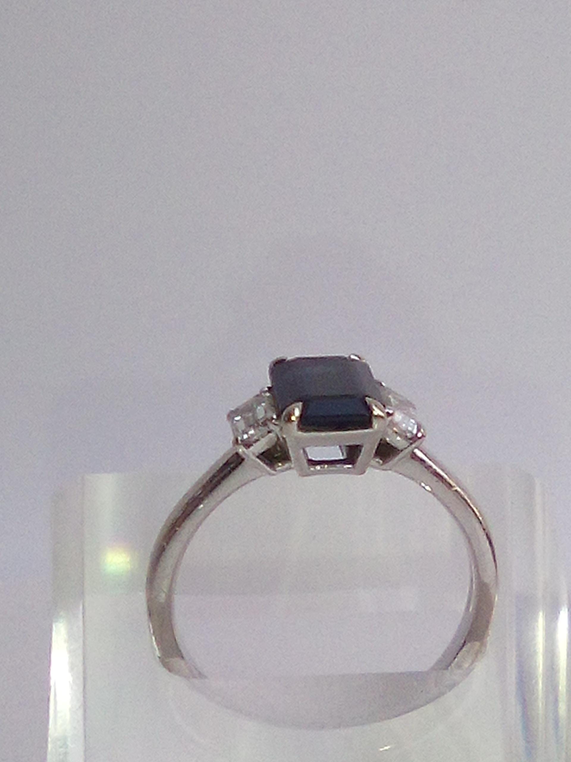 ALGT Certified 1.61ct Midnight Sapphire Ring, 18k White Gold Emerald Cut, Diamond Baguettes