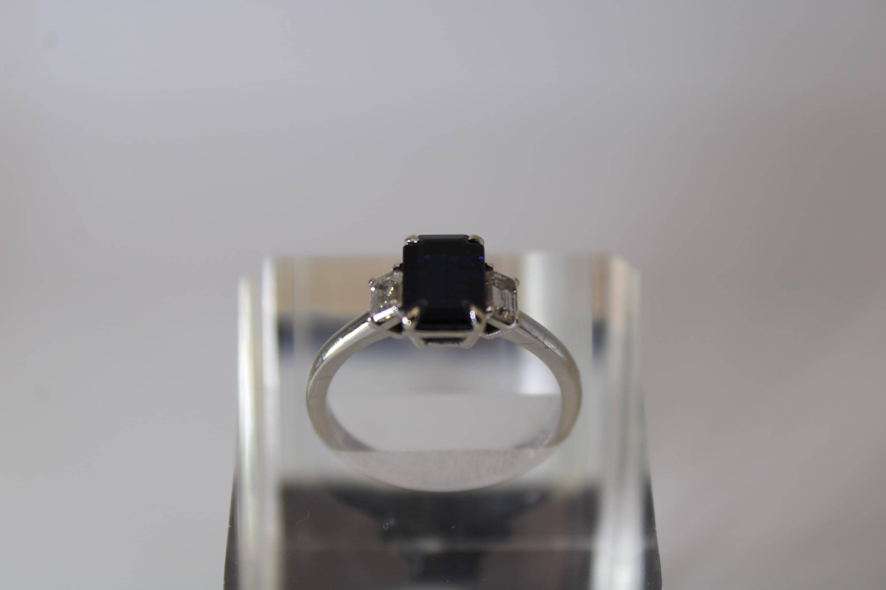 Center Stone: 1.6ct Natural Sapphire in a Deep Midnight tone.